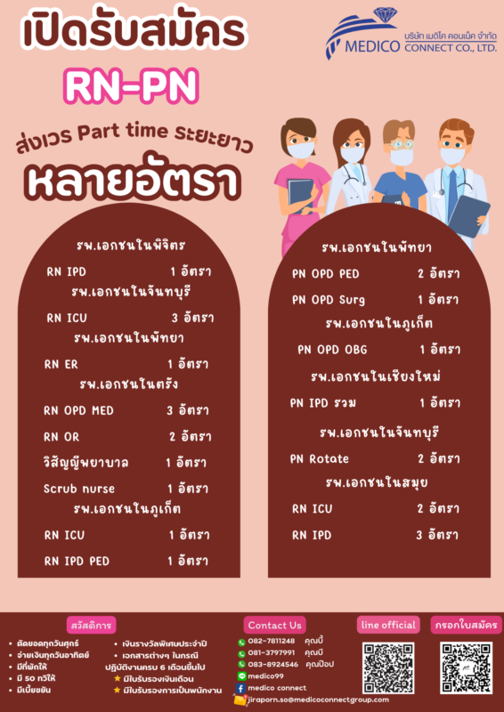 รับสมัครงานครอบครัว Medico ยินดีต้อนรับจ้า Posted on February 3, 2024February 3, 2024 by webmaster medicoconnect 03 Feb บริษัทเมดิโค คอนเน็ค เปิดรับสมัคร พยาบาลวิชาชีพ-ผู้ช่วยพยาบาล Part-time ส่งเวรยาวทั้งเดือน สามารถเริ่มงานได้ทันที สนใจติดต่อ : medico99 081-3797991 คุณบี 082-7811248 คุณบี้ 083-8924546 คุณป๊อป e-mail : Jiraporn.so@medicoconnectgroup.com webmaster medicoconnect มา Update ตำแหน่งงานว่างกันจ้า 4 กุมภาพันธ์ วันมะเร็งโลก