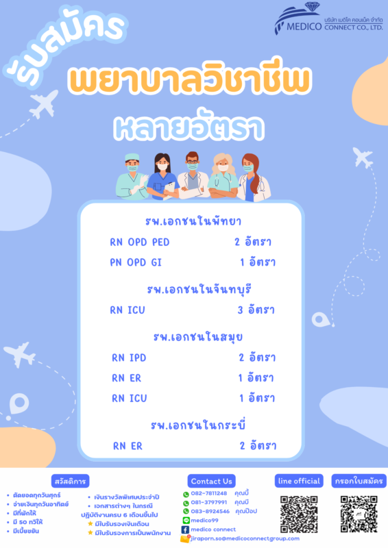รับสมัครงานงานดี งานปัง เชิญทางนี้จ้า Posted on March 3, 2024March 3, 2024 by webmaster medicoconnect 03 Mar ด่วน บริษัทเมดิโค คอนเน็ค เปิดรับสมัคร พยาบาลวิชาชีพ-ผู้ช่วยพยาบาล Part-time ส่งเวรยาวทั้งเดือน สามารถเริ่มงานได้ทันที สนใจติดต่อ : medico99 081-3797991 คุณบี 082-7811248 คุณบี้ 083-8924546 คุณป๊อป e-mail : Jiraporn.so@medicoconnectgroup.com webmaster medicoconnect อบรมพัฒนาบุคลากรเพื่อความเป็นเลิศ โรคอ้วน