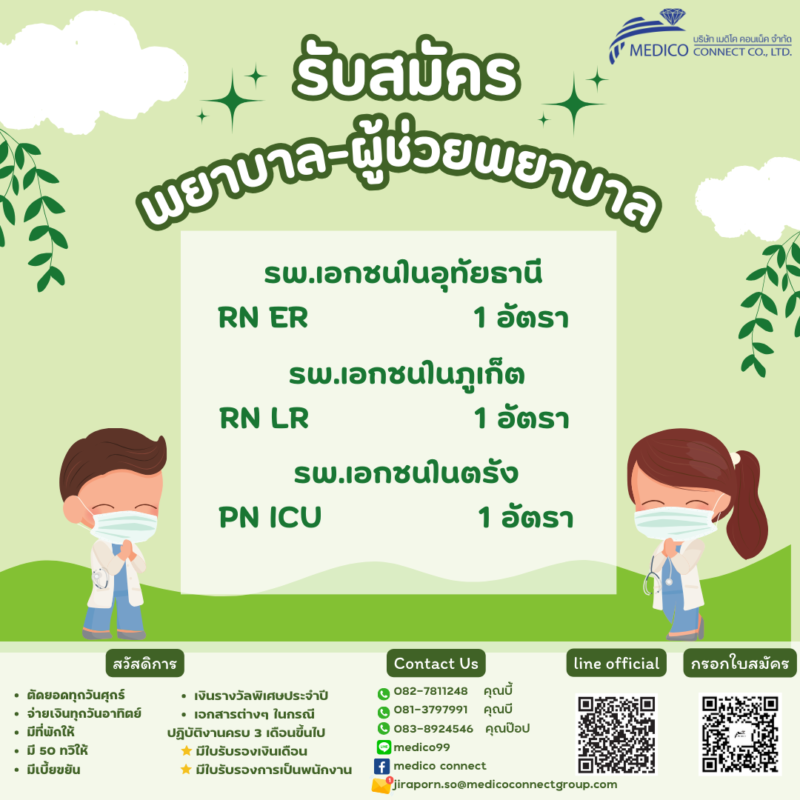 รับสมัครงานด่วน Posted on March 30, 2024March 30, 2024 by webmaster medicoconnect 30 Mar ด่วน บริษัทเมดิโค คอนเน็ค เปิดรับสมัคร พยาบาลวิชาชีพ-ผู้ช่วยพยาบาล Part-time ส่งเวรยาวทั้งเดือน สามารถเริ่มงานได้ทันที สนใจติดต่อ : medico99 081-3797991 คุณบี 082-7811248 คุณบี้ 083-8924546 คุณป๊อป e-mail : Jiraporn.so@medicoconnectgroup.com webmaster medicoconnect ตำแหน่งงานว่างมาแล้วจ้า สดใสขนาดนี้ สนใจรับเวรกับพี่ไหมคะ