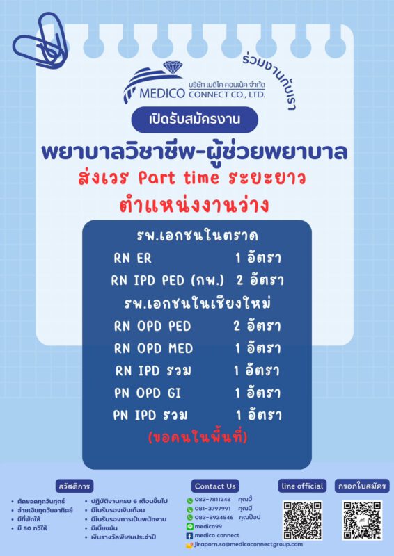 รับสมัครงานมาเป็นครอบครัวเดียวกันนะค่ะ Posted on January 14, 2024January 14, 2024 by webmaster medicoconnect 14 Jan ใส่แมสก์คือหน้าที่คุณ แต่ใส่ใจคุณคือหน้าที่เรา มาเป็นครอบครัวเดียวกันนะค่ะ บริษัทเมดิโค คอนเน็ค เปิดรับสมัครพยาบาล-ผู้ช่วยพยาบาล ( Part-time ส่งเวรยาวทั้งเดือน) หลายอัตรา สามารถเริ่มงานได้ทันที ดูแลทุกระดับประทับใจ สนใจติดต่อ ID : medico99 081-3797991 คุณบี 082-7811248 คุณบี้ 083-8924546 คุณป๊อป webmaster medicoconnect มาแล้วจ้า มาสมัครงานกันนะค่ะ