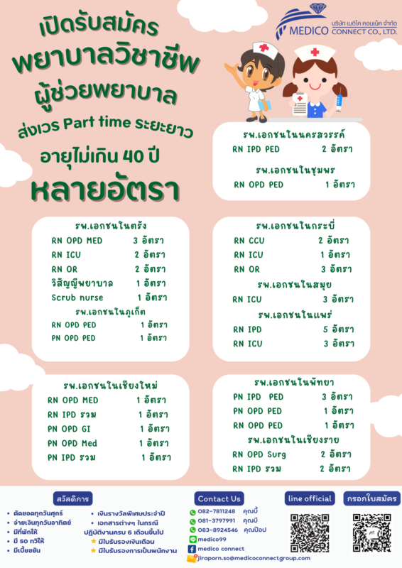 รับสมัครงานยินดีต้อนรับเข้าสู่ครอบครัว medico Posted on January 23, 2024January 23, 2024 by webmaster medicoconnect 23 Jan ด่วนจี๋ ไปรษณีย์จ๋า บริษัทเมดิโค คอนเน็ค เปิดรับสมัคร พยาบาลวิชาชีพ-ผู้ช่วยพยาบาล ( Part-time ส่งเวรยาวทั้งเดือน) หลายอัตรา สามารถเริ่มงานได้ทันที ดูแลทุกระดับประทับใจ งานดี เงินดี จ่ายตรงเวลา มีเบี้ยขยัน มีโบนัส สนใจติดต่อสอบถามได้จ้า ID : medico99 082-7811248 คุณบี้ 081-3797991 คุณบี 083-8924546 คุณป๊อป e-mail : Jiraporn.so@medicoconnectgroup.com Medico Connect #บริษัทจัดหาพยาบาลผู้ช่วยพยาบาล #รายได้ดี #หางานพยาบาล #หางานผู้ช่วยพยาบาล #medicoconnect webmaster medicoconnect Up Date ตำแหน่งงานว่าง Up date ตำแหน่งงานว่าง