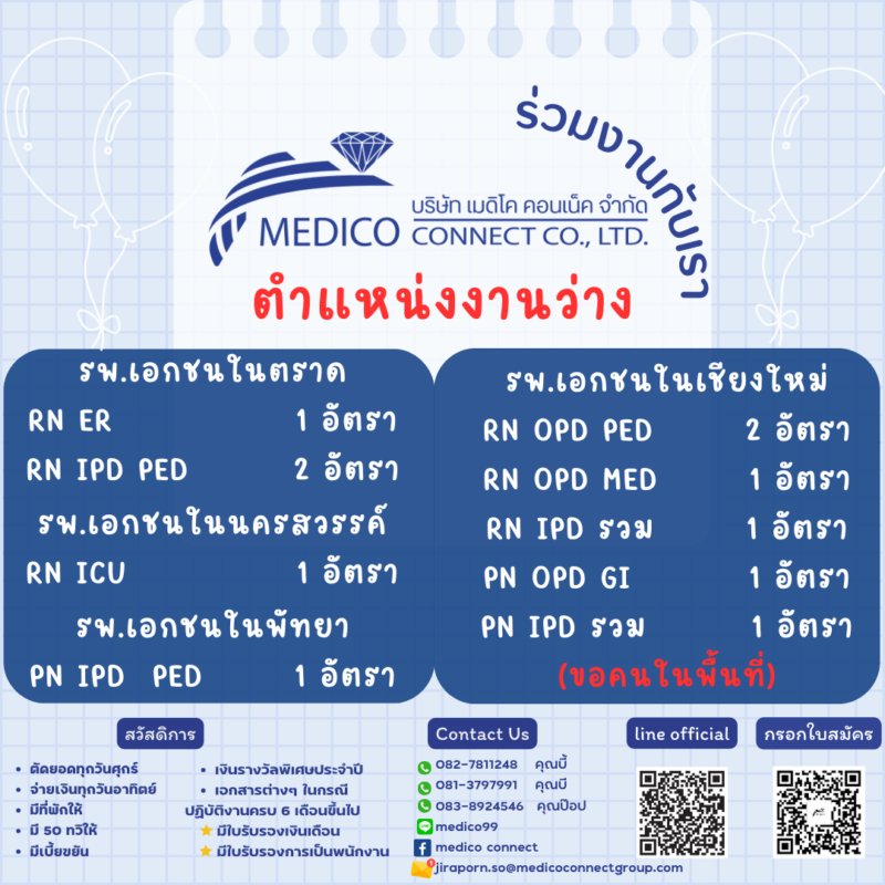 รับสมัครงานเชิญทางนี้จ้า Posted on January 16, 2024January 16, 2024 by webmaster medicoconnect 16 Jan ด่วน!! วันนี้ไม่เห็นค่า วันหน้าคือพรุ่งนี้ บริษัทเมดิโค คอนเน็ค เปิดรับสมัคร พยาบาลวิชาชีพ-ผู้ช่วยพยาบาล ( Part-time ส่งเวรยาวทั้งเดือน) หลายอัตรา สามารถเริ่มงานได้ทันที สนใจติดต่อ ID : medico99 082-7811248 คุณบี้ 081-3797991 คุณบี 083-8924546 คุณป๊อป webmaster medicoconnect มาสมัครงานกันนะค่ะ Up date ตำแหน่งงานว่าง 17/1/2567