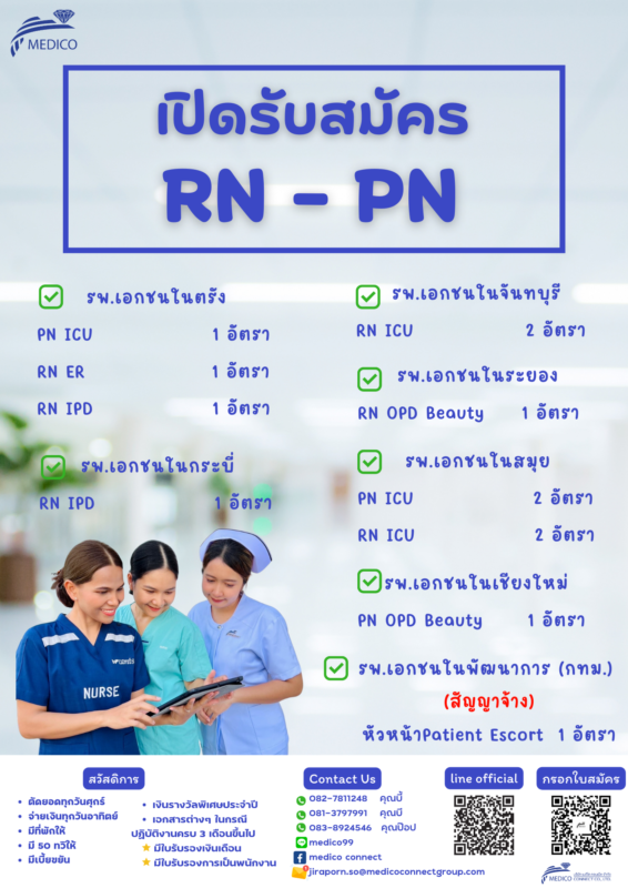 บริษัทเมดิโค คอนเน็ค เปิดรับสมัคร พนักงานหลายอัตรา ( Part-time ส่งเวรยาวทั้งเดือน) สามารถเริ่มงานได้ทันที สนใจติดต่อ ID : medico99 082-7811248 คุณบี้ 081-3797991 คุณบี 083-8924546 คุณป๊อป