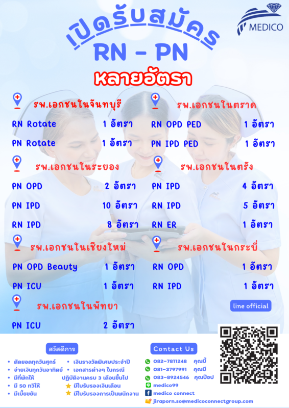 บริษัทเมดิโค คอนเน็ค จำกัด เปิดรับสมัคร พยาบาลวิชาชีพ-ผู้ช่วยพยาบาล Part-time ส่งเวรยาวทั้งเดือน สามารถเริ่มงานได้ทันที มีที่พักให้ มีเบี้ยขยัน สนใจติดต่อ : medico99 081-3797991 คุณบี 082-7811248 คุณบี้ 083-8924546 คุณป๊อป #สมัครงาน #Recruit #หางานโรงพยาบาล #สมัครงานโรงพยาบาล #freelance #Parttime #หางานParttime #หางานFreelance #พยาบาลFreelance #หางานพยาบาล #หางานผู้ช่วยพยาบาล #แคปชั่น
